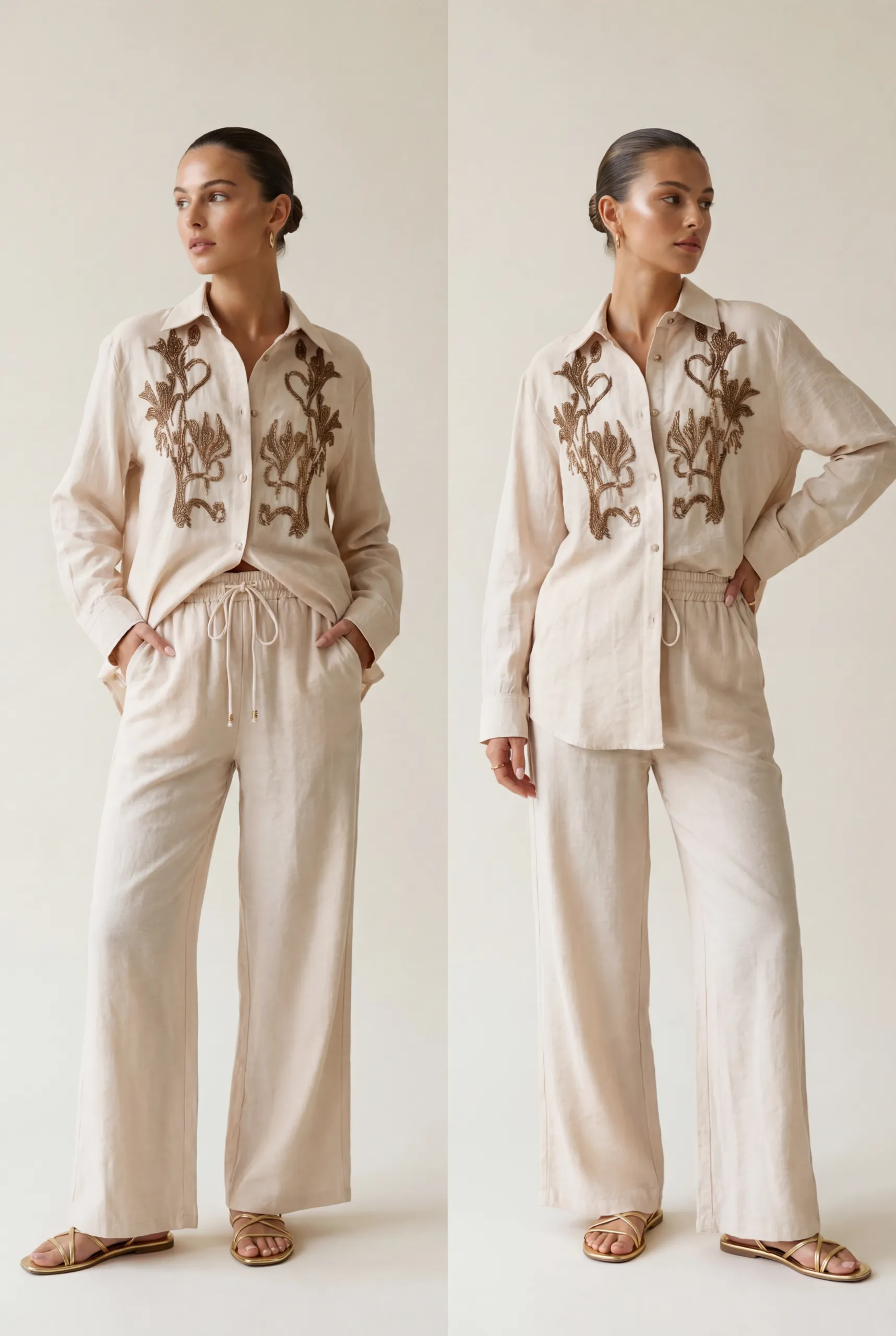 Lniany komplet to must-have tego sezonu. Podpowiadamy 5 sposobów, jak nosić go na co dzień, do biura, na randkę i na specjalne okazje — plus bonus: jak nosić go rozdzielnie.